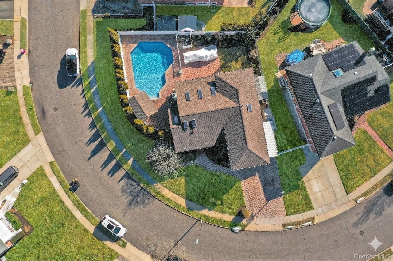 Welcome to this classic Seaford Cadillac split-level home, offering a unique blend of timeless design and modern comfort across four spacious levels. From the moment you arrive, you're greeted by a fully paved driveway and a striking entrance water feature that sets the tone for the home's impressive curb appeal. Step inside to a large entry foyer that flows seamlessly into a dramatic sunken living room, creating an inviting space perfect for both relaxing and entertaining. The home features beautiful hardwood floors throughout and is filled with natural light from six skylights. The heart of the home is the thoughtfully designed kitchen, complete with all-wood cabinetry, granite countertops, stainless steel appliances, and radiant heated floors for year-round comfort. Adjacent to the kitchen, a built-in dining buffet with granite countertop adds both style and functionality. This home offers three bedrooms and two full baths, including a primary suite featuring a luxurious jacuzzi tub. Additional living spaces include a versatile den with surround sound and a wet bar, a dedicated gym, a laundry room, and an extra bonus room ideal for storage or a guest bedroom. Step outside to your private backyard oasis, featuring a fully paved patio with an outdoor bar, dining area, and a complete outdoor kitchen with granite countertops-perfect for entertaining. Enjoy summer days in the sunken above-ground pool (15x30), designed for both relaxation and fun. This exceptional property combines thoughtful upgrades, unique architectural elements, and versatile living spaces-truly a must-see home.